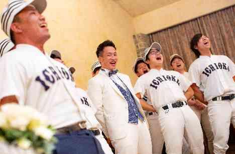 新郎様の学生時代のご友人の皆様による余興。全員で、学生時代のユニフォームを着用してくださり、当時を思い出すかのような演出も! 学生時代の仲間との友情を感じる余興は、新郎様も参加して大盛り上がりでした。