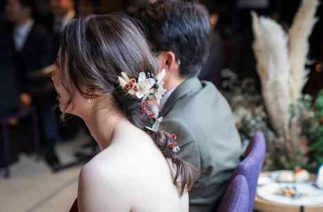 おふたりが結婚式をする上で大事にしたいと仰っていたのが「みんなの笑顔が見られる時間にしたい」ということ。笑い疲れるくらいあたたかい日になるように、ゲストが肩肘はらず自然体でいられる雰囲気と感謝をしっかり伝えることを軸に、ご親族の皆様との食事会の後に挙式、そしてご友人とのパーティという2部制での結婚式を叶えられました。