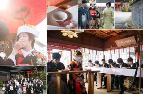 新婦様の生まれ故郷篠山市。緑豊かで、四季の美しさを堪能できるこの地で厳かな神社挙式が執り行われました。新婦様のお母様なじみの大賣(おおひるめ)神社 は、平安時代初め頃に造営された趣ある神社。今日までかわいがってくださったご家族に見守られ、ご夫婦の誓いを立てられました。伝統的な挙式のあとは、篠山城下町ホテルNIPPONIA にて、ご披露宴。地元食材を用いたお料理を堪能しご家族水入らずのひとときです。