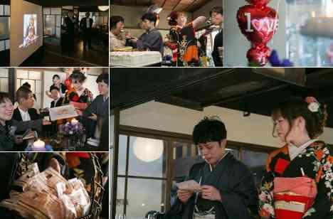 伝統的な挙式のあとは、篠山城下町ホテルNIPPONIA にてご披露宴。地元食材を用いたお料理を堪能しご家族水入らずのひととき。地元の方々 にとっても婚礼は嬉しい出来事で、「今日は結婚式なんだね。おめでとう!」と、道行くご近所さんからもお祝いの言葉が寄せられました。「住んでいた頃には気づかなかった篠山の魅力を再発見した」とおっしゃる新婦様。嬉しい門出となりました。