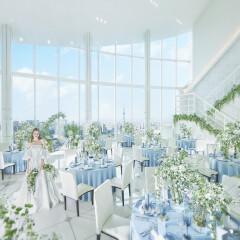 選べる2つのパーティ会場*東京ランドマークを180°C望む洗練空間でゲストをおもてなし!天井高13mの自然光あふれるパーティー会場にラグジュアリーな専用ラウンジも完備