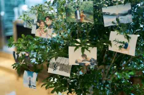 いっぱいの写真を飾ったウェルカムスペース