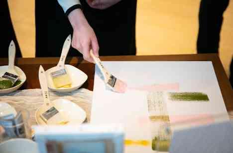 受付で用意されていたのは色とりどりの絵の具と筆、そして大きな白いキャンバス。新郎新婦様は挙式で使う結婚証明書として、その場で全員で作り上げる「キャンバスアート」をご用意。「結婚生活において大切なことは?」のお題に沿ってゲストの皆様には答えに付随する色でキャンバスを彩っていただきました♪どんな仕上がりになるのか、新郎新婦様もゲストの方々も想像がつかない世界に1つだけのオリジナルの証明書です♡