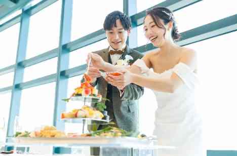 ケーキ入刀は新郎新婦様の初めての共同作業として定番の演出ですが、お二人が用意されたのはケーキではなく寿司タワー!たくさんの手まり寿司や巻き寿司が乗ったタワーが登場すると会場からはどよめきと歓声が♪新郎新婦様には皆様の目の前でいくらをたっぷりとかけていただく仕上げをしていただきました。その後はビュッフェのようにゲスト皆様に好きなお寿司を選んでいただき、おいしく召し上がりました♡