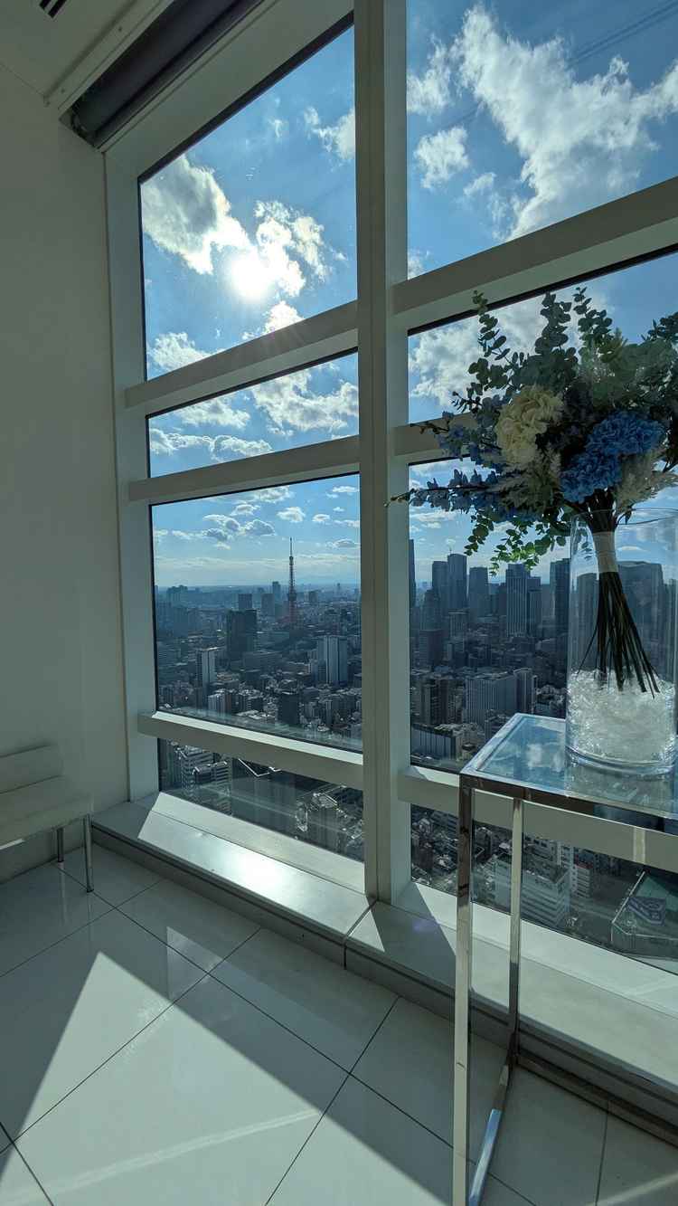 高層階なので悪天候時でも十分に明るく、新郎新婦もゲストも明るい気持ちになれる式になるイメージがついた。