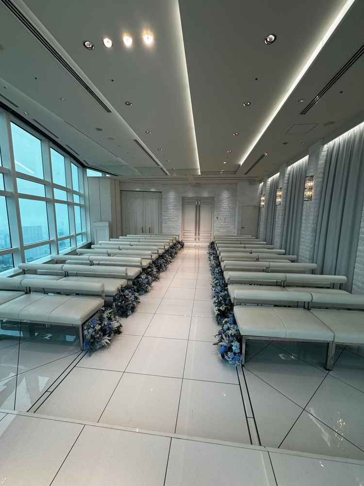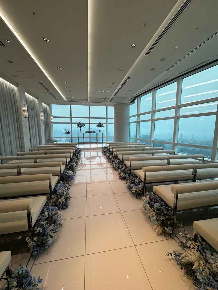高層階からの景色を一望できる白を基調とした式場