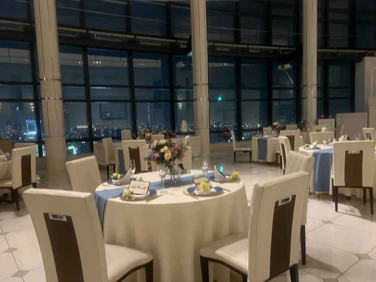 ナイトウェディングなら絶対この式場が良いと勧めたいくらいの絶景。もう少し広ければとも感じるがこの料金でこの絶景は十分