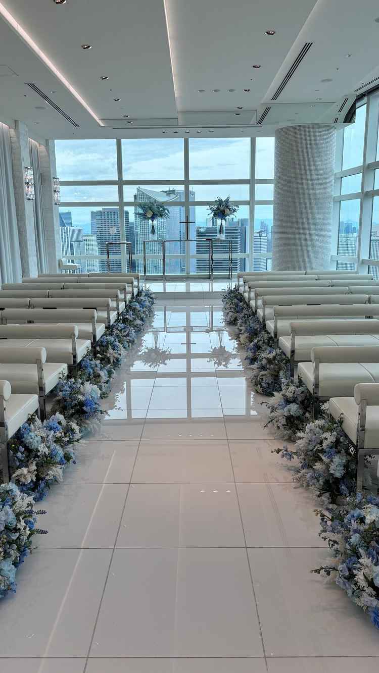高層階からの景色を一望できる白を基調とした式場