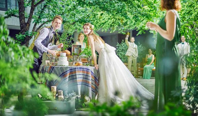 吹き抜けと自然素材が心地よい「ラ テラッツァ」と、オープンキッチン併設の「ラ フォレスタ」からおふたりのイメージに合わせて披露宴会場を選べます。ガーデンも併設されているので、自由度の高い演出が叶います。おふたりらしい演出でご披露宴を盛り上げよう!