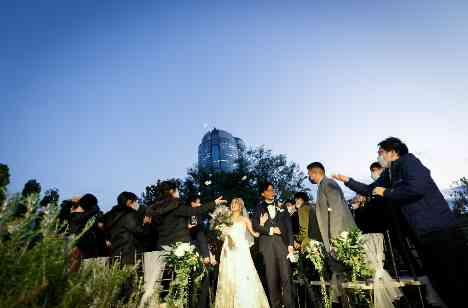 一面澄み渡る青空が印象的なおふたりの挙式。 自然に囲まれたガーデンチャペルにてキリスト教式を行いました。 挙式中盤より少し日も傾き、ガーデンチャペルのライトアップもどんどんと幻想的に....♡ 緊張感もありつつ、ところどころでは笑顔も見られるようなアットホームで温かみのある挙式でございました。