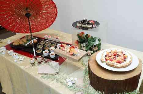 お越し頂いたゲストにおもてなしをしたいというのがお二人の想い... そこで最後の演出として、「デザートビュッフェ」をゲスト皆様へサプライズプレゼントしました!ホワイエのスペースを最大限活かし、全てのゲスト様と写真撮影や歓談を楽しめるよう、お二人はビュッフェ会場内でゲスト様をお迎え♪BGMや会場の雰囲気も合わさり、ロマンティックな雰囲気からにぎやかに盛り上がる、お二人らしい結びの演出となりました!