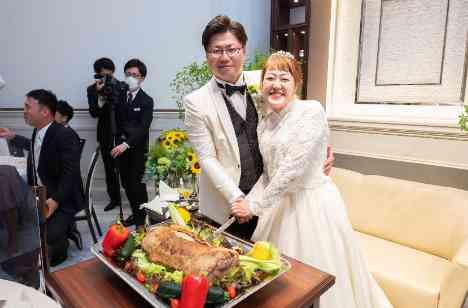 一味変わった入刀セレモニーがしたい!というご希望からお二人は皆様が好きな『ローストビーフ』に入刀をしました‼︎ お二人の前に登場したローストビーフをゲストの皆様がご覧になった瞬間、会場は笑顔に包まれ、ファーストバイトでは新郎様も新婦様もとても美味しそうに召しあがっており、ゲストの皆様も大変盛り上がっておりました♪