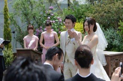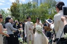ガーデンチャペルでの挙式は、ブライズメイドの皆様やリングガールのかわいいお二人にもご協力を頂きました♪ お二人らしく和やかに進みます♪