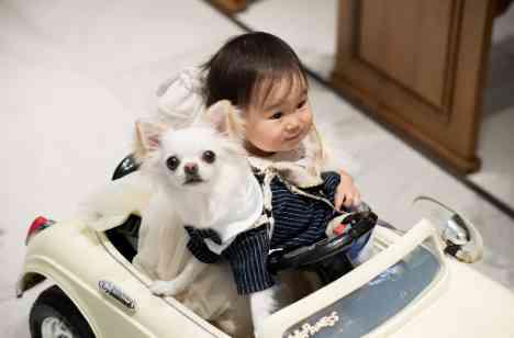 新郎新婦様が挙式で取り入れたかった演出のひとつ!愛犬とかわいい姪っ子さんによるリングセレモニーを行いました。愛犬と姪っ子さんにはラジコンカーに乗ってご登場いただき、新郎新婦様のもとまで指輪を運んでいただきました。ゲスト様からも「かわいい!」との歓声が!会場内全体が愛犬と姪っ子さんのトリコとなっておりました♡