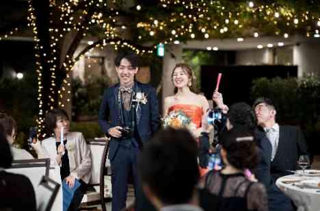 ゲストの方にも楽しんでいただきたい!という思いからゲスト全員参加型で受付時にひとりひとつ、ペンライトをお取りいただきました。ペンライトには番号が振ってあり、お二人より読み上げた数字のペンライトをお持ちの方が「ラッキーゲスト」ということでお二人よりプレゼントをご用意いたしました。ゲストの方もわくわくドキドキな演出となりました。