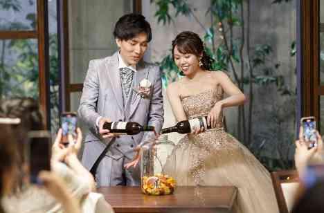 ゲスト様とのお時間をとても大事にしていたお二人。 お打合せで、一緒に楽しんで頂ける演出がしたいとおっしゃっていたことから、サングリアをゲスト様と一緒に作り上げることにいたしました。 ゲスト様にフルーツを入れて頂き、仕上げにお二人にワインを注いで頂き、一つのサングリアが完成いたしました! ゲストの皆様にご協力頂き1つのものを作る演出は一体感を感じることができ、とても温かい空間でございました。