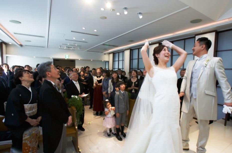 まずは新郎様が元気良く入場です!新郎様のお人柄により列席の皆様が一瞬にして笑顔溢れる空間に早変わりです♪ 次に新婦様ご入場です♡美しさにゲストの皆様もうっとり・・ そして新婦様の甥っ子のEくんとYくんがお二人のリングを持って登場!一生懸命にお二人のもとまでリングを運んでくれました! お子様が頑張ってくれた事もありアットホームな挙式になりました☆