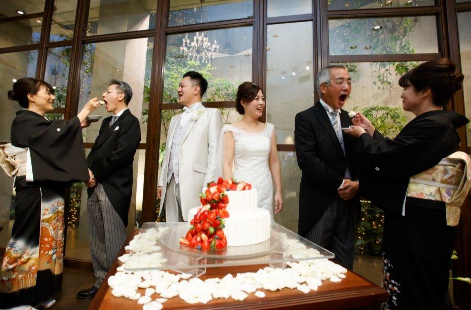 いつも仲良しなお父様・お母様もご参加頂き手本バイトです♪ 照れくさそうに食べさせあう親御様のお姿を見て新郎新婦様も幸せそうでした。結婚式ならではの素敵な演出でゲストも楽しそうに過ごしておりました。