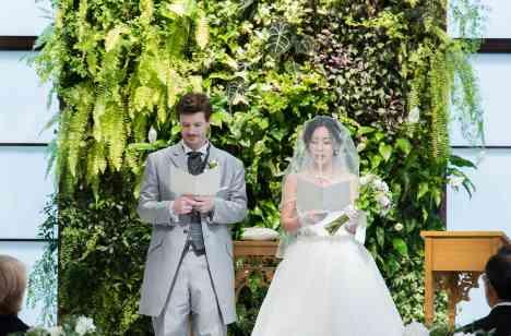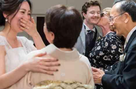 挙式のリハーサル前にチャペルにて新郎新婦と新郎新婦ご両親とのファーストミート。晴れ姿のお2人を目の前に、新婦のお母様が思わず涙されました。誓いの言葉では「今日と言う日を迎えるにあたって、これからの人生を2人で手を取り合って共に歩んでいく事を誓います。」と英語で。「愛する友人やパートナーを尊敬し、サポートし、これから素敵な家庭を築き上げる事を誓います。素晴らしい人生を歩んでいきます。」