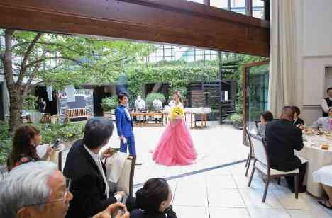 夏らしくゲストとの距離が近い「グリルビュッフェ」を行いました。晴天で、ゲストとたくさんお写真を撮ったり、歓談の時間もたっぷりと楽しみました!ゲストも珍しい演出だったので、楽しんでいらっしゃいました。