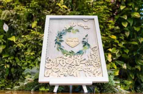 受付でドロップスに記入をいただいたゲストの皆様。お式で結婚証明書としてお二人が最後にサインをしていただき、完成☆ お二人への祝福や結婚の承認などの意味があり、ゲストの皆様に作成いただいた世界に1つだけの証明書ができあがりました! 「二人の結婚式の証人になる」という意味が込められたウエディングドロップスは、お二人にとって大切な一生の宝物となりました・・・♡