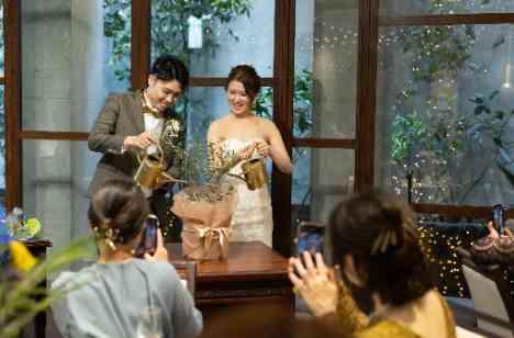 お二人の初めての共同作業は植樹セレモニー☆ ゲストの皆様にもパーティ前にお二人の人生が幸せでありますようにという想いをこめ木に土を入れてもらい、ゲスト参加型のセレモニーでもあります。長寿の樹・幸せを呼ぶ樹ともいわれ、想いを込めてお二人が最後にお水をあげ、記念樹が完成♪ 皆様と植えた木が思い出と共にシンボルツリーとして、家族の成長と共に大きくなっていくのが楽しみです♡