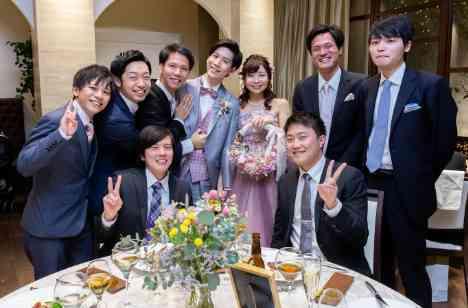 新婦様は紫のカラードレスで雰囲気をかえてご登場です♪新郎様もタイとベストの刺し色を新婦様のドレスのお色味とあわせていただき、ばっちりのコーディネートでした♡そしてフォトラウンドです!新郎様のエスコートで皆様とお話をするお時間をしっかりお取りしながらを皆様のテーブルをまわりました。