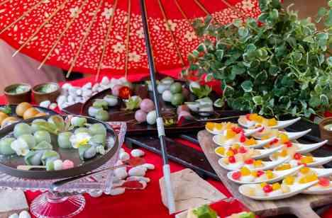 おもてなしといえばお料理!ということでお打合せからお2人もしっかりこだわりをお持ちでございました。当日はサプライズもこめてデザートビュッフェをご用意!お2人に扉を開けていただきスタートしたデザートビュッフェには、ご年配のゲスト様も楽しめるように和風のデザートもたくさんご用意して、お楽しみいただだきました!