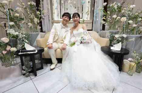 会場の装飾や空間にこだわりたいとお話してくださったご新婦様。メインバックはフラワーカーテンにリボンを付けて、白いチュールをあしらい、ナチュラルでガーリーな雰囲気に。お花は白をベースに淡いピンク・パープル・ライトブルーを入れ、リボンも結んで、可憐で可愛らしく仕上がりました。ウェディングケーキにもリボンを飾り、全体的な世界観も統一して、フォトジェニックで思わず真似したくなるようなアイディアです♪