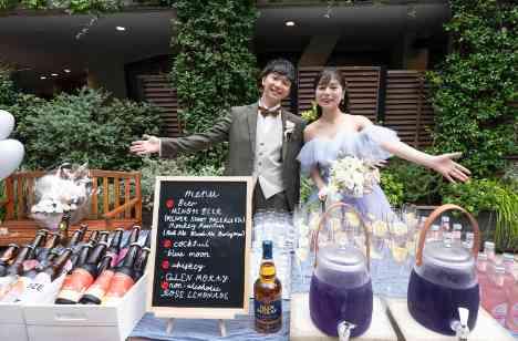 テラスを存分に使っていただく演出の1つにデザートビュッフェが有りますが、今回はより長くテラスで過ごしていただけるように、バーカウンターも設置してゲストの皆様をおもてなししてくださったお二人。おしゃれなケーキやフルーツだけでなく、ハーブソーセージやカプレーゼ、魚介のマリネといったおつまみもご用意。新郎様の地元のビールや新婦様特製のドリンクなど直前までこだわって考えてくださった最上級のおもてなしです♡