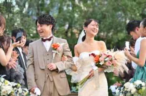 テラスのカーテンが開き、いよいよお色直し入場のお時間です!ご新婦様の手にはたくさんのコスモスの入った籠が♪お二人は各テーブルをまわって、1つ1つラッピングされたコスモスを渡し、ご挨拶をしています!結婚式当日がコスモスの日ということでフラワーサーブのお花も様々色のコスモスをお選びになりました。また、ゲストひとりひとりお手紙もお渡しされており、ゲストも嬉しそうにされていました♡