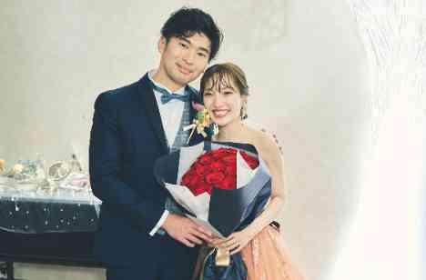 ゲストのお見送りも結び、会場で新婦様のソロショットを撮っている後ろから新郎様のお姿が!手には赤いばらの花束を持っています。後ろを向いているご新婦様の方に手をあてトントンを呼びかけます。振り向いたご新婦様は驚きと嬉しさの混じった素敵な笑顔をされていらっしゃいました♡33本のバラの花言葉は「生まれ変わっても愛する」という意味があります。ご新郎様の想いがご新婦様に伝わった素敵な空間になりました。