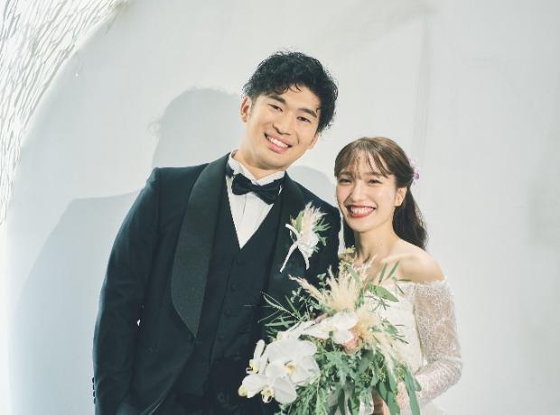 ゲストのお見送りも結び、会場で新婦様のソロショットを撮っている後ろから新郎様のお姿が!手には赤いばらの花束を持っています。後ろを向いているご新婦様の方に手をあてトントンを呼びかけます。振り向いたご新婦様は驚きと嬉しさの混じった素敵な笑顔をされていらっしゃいました♡33本のバラの花言葉は「生まれ変わっても愛する」という意味があります。ご新郎様の想いがご新婦様に伝わった素敵な空間になりました。