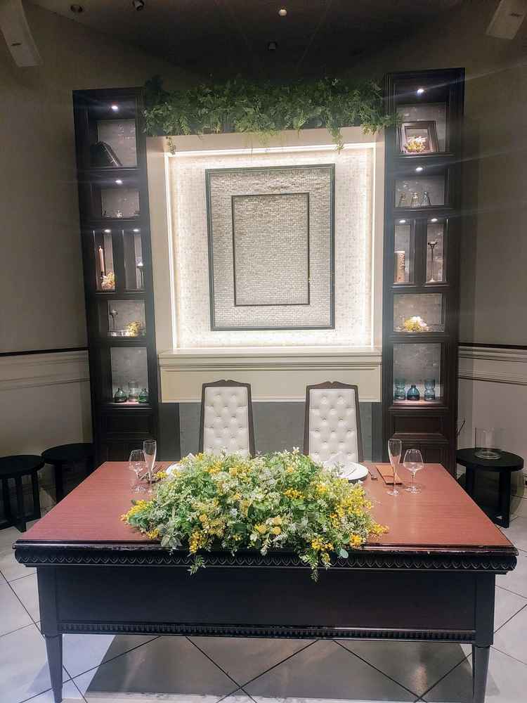 天井が高く、開放感がありました。華美な装飾をしなくても華やかで、お庭まで見通せる広い窓があり居心地の良い空間でした。 お庭のグリーンの印象がとても良かったです。大人のパーティーになりそうだと思えました。
