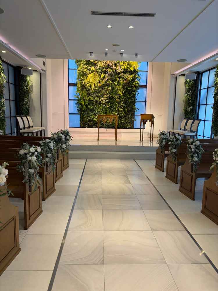 控室や、エレベーターなど必要な設備は揃っていて不便なく式を挙げられそうです。ドレスは他店で試着する必要がある。