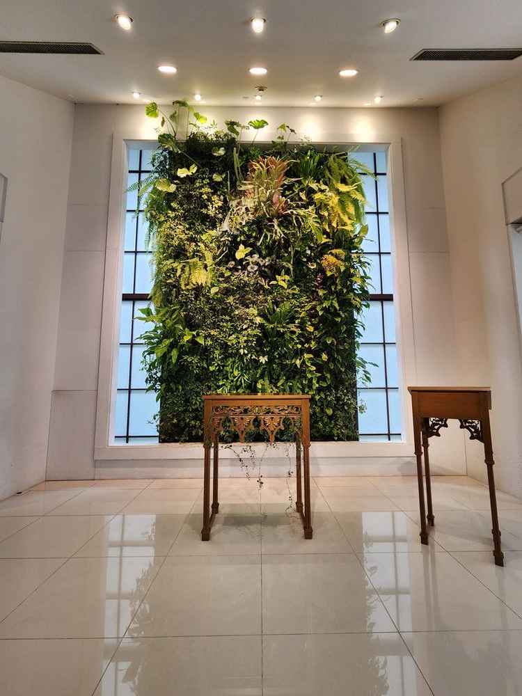 ガーデンの緑の感じがよかった。スイーツビュッフェやグリルなどができるのも楽しそうだと思った。 室内挙式場も綺麗だった。