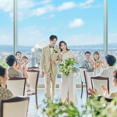 【大阪一望パノラマビュー×感動の天空チャペル体験♪】自然光が降り注ぐ地上160mの圧巻の景色!絶景と生演奏の音色が響き渡る感動の挙式でお世話になった家族や大切な人たちへ感謝の気持ちが伝わる挙式を体験!