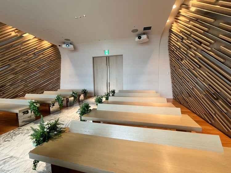 挙式会場にプロジェクターがあったり、披露宴会場ではプロジェクションマッピングができるの設備があったりと充実していると感じました。