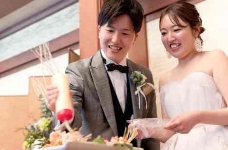 以前おふたりがお勤めされ、出会いのきっかけとなった“たこ焼き屋さん”の演出を取り入れられました。焼きあがったたこ焼きにおふたりで仕上げをされ、ゲストの皆様へご提供。おふたりの人生に欠かせないアイテムでの演出は、ゲストの心にも深く印象に残る最高のおもてなしとなりました。ケーキ入刀は、お子様とご一緒にご家族3人で。お三方の仲睦まじいお姿を目にされ、ゲストも満面の笑みを浮かべられていました。