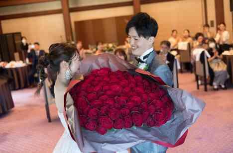 実はまだ、新婦様へプロポーズの言葉を贈られていなかった新郎様。新婦様への想いをはっきりと言葉にしたいとの想いから、披露宴中にサプライズでプロポーズのお時間を設けられました。日頃の感謝の気持ちや新婦様への想いを言葉にされ、『結婚してください』という意味を持つ108本のバラの花束を贈られた新郎様。おふたりの愛が改めて結ばれ、何度でも思い出したくなるような最上の一日となりました。