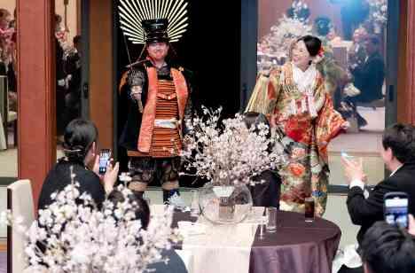 お色直し入場では、艶やかな色打掛をお召しになった新婦様と、輝きを放つ甲冑に身を包んだ新郎様のお姿に、ゲストからはひときわ大きな拍手が。 また、日本人に深く馴染みのある『お餅つき』で、会場は大いに盛り上がりました。 カラオケも楽しまれ、まるで日本のお花見のように常に賑やかな雰囲気に。 新郎様新婦様の心のこもったおもてなしにより、海を越え、ご両家の絆が強く結ばれたかけがえのない一日となりました。