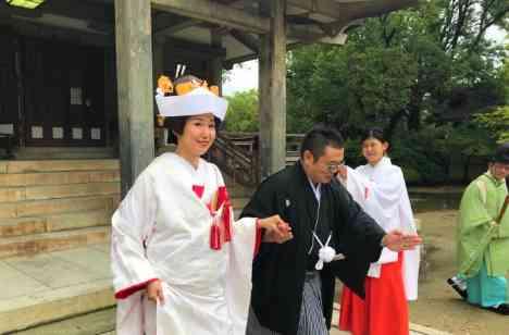 友人ゲストも参加した「豊國神社」での挙式