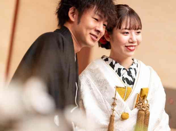 和の挙式を希望されていたおふたりは、ご家族やご先祖との縁を深く感じられる「神前式」を選ばれました。結婚式当日は、秋晴れの清々しい天候の中、難波大社 生國魂神社にて厳かな挙式を執り行いました。伝統的な和婚の花嫁行列は、ご家族にとってかけがえのない想い出となり、和の魅力と日本の伝統を感じる素晴らしいひとときでした。