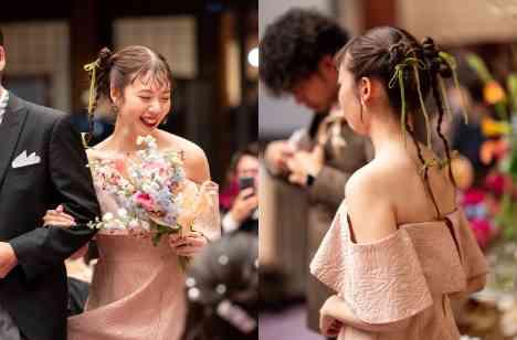 白無垢にモードな掛下を合わせた新婦様のコーディネートは、トレンドを押さえつつも日本の伝統を感じさせる素晴らしい仕上がりでした。お色直しでは、淡いトーンのドレスとカジュアルなタキシードにお召し替えされ、温かみのあるフラワーコーディネートがよく合いました。和モダンで華やかな印象を持ちながら、ドレスに合わせたポップな花材や色合いを選び、新婦様のこだわりが光るコーディネートとなりました。