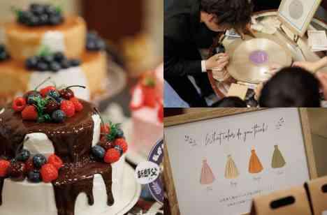 「ゲストに主役として楽しんでほしい」。という想いを形にするため、お打合せでは、ゲストが参加できる役割をたくさんご用意されました。音楽が好きなおふたりらしく、ウェルカムスペースはレコードをポイントにしたコーディネートに。ウェルカムアイテムとして装飾されたケーキの模型は新婦様のお父様が作成されたオリジナルのもの!ゲストへの想いを形にするため、丁寧に準備を重ねられました。