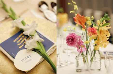 披露宴会場にも、おふたりのこだわりが。シャンパンベージュのテーブルクロスに色鮮やかな装花をコーディネートされ、初夏らしい季節感溢れる空間となりました。BGMは音楽がお好きなおふたりが厳選。ゲストを楽しませる、遊び心満載の空間となっていました。おふたりが入場され、幸せ溢れる笑顔のおふたりに拍手が鳴り止まないご様子。乾杯の声が響き渡る、パーティの始まりとなりました。