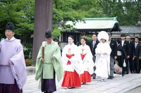 圧巻の花嫁行列。豊國神社での厳かな神前式