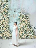 透明感のある真っ白な空間に美しい曲線を描くブルーのステンドグラス。陽の光で輝く姿はとても神秘的。やわらかな太陽の光と、水のきらめきが、誓いの瞬間を包み込む。