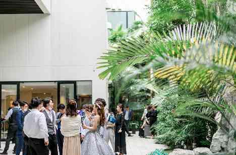 「何よりガーデンやあらゆる所に緑もたくさんあり、大阪の都心ということを忘れてられる空間だと思いました。」と新婦様♡「リゾート感<ナチュラル な私たちでしたがそのイメージにピタッと合わせて頂きました。お花やデーブルクロス、ペーパーアイテムでその雰囲気に変えてくださった皆様には感謝でいっぱいです。」