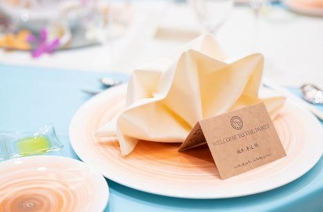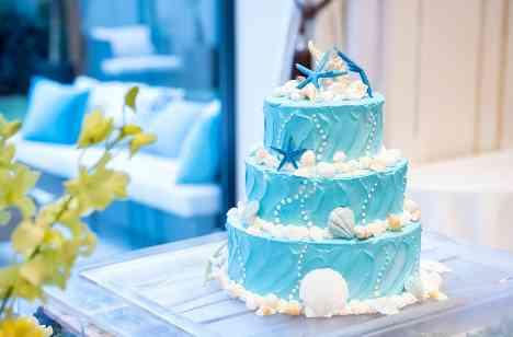 「ブルーが好きな私たちは、シャンパンやウェディングケーキに鮮やかやブルーを選びました。特にウェディングケーキは海っぽいすごく可愛いケーキを作って頂き、ゲストのみなさんにも非常に好評でした♬お色直しの際に色当てクイズをし、思っていた以上に会場が盛り上がっていたのもいい思い出です。また私たちが座る高砂が、ゲストのみなさんと同じ目線で過ごせたのもアットホームな雰囲気で良かったです◎」
